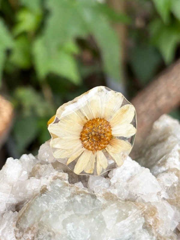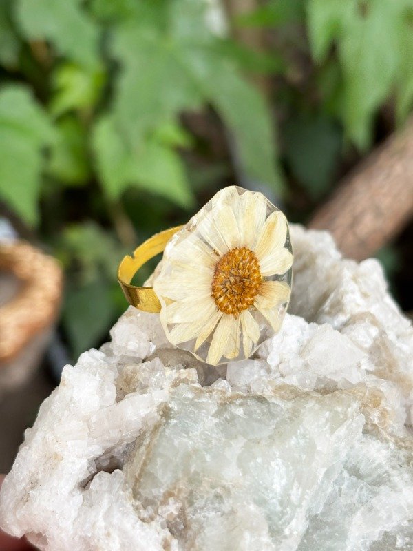Anillo de metal dorado con flor de variación de Crisantemo.