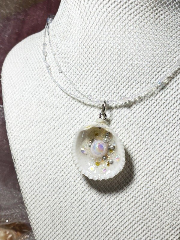 Collar estilo gargantilla con gotas de resina y glitter. Regulable.