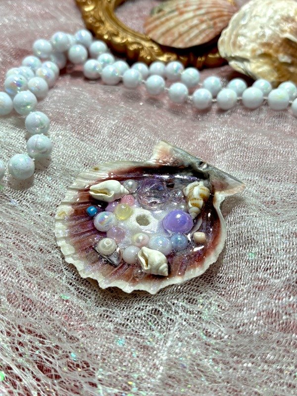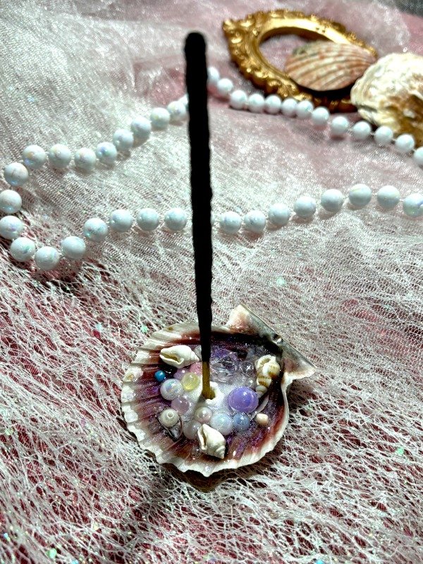 Caracol con perlas y resina con orificio para sahumerios. También puede ser decorativo, porta anillos o aros. Medidas: 6x8 cm